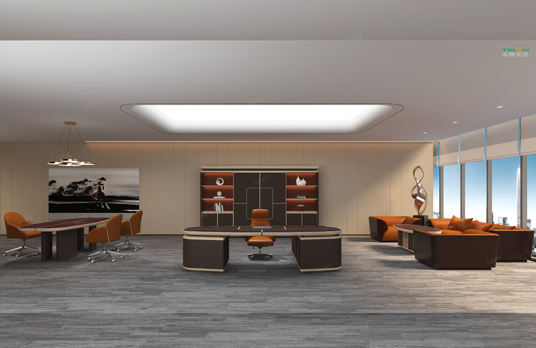 The large span design when the steed is running is adopted in the platform foot frame, which implies that the enterprise has been developing rapidly, healthily and stably. Thickening the edge of the table made beveled processing technology, more sedate and modern style. A good office environment must embody the combination of people and things, people and space, and people and nature.